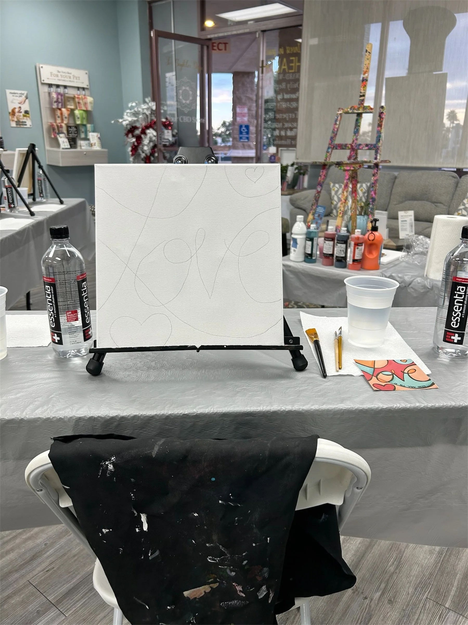 Gather your friends for a creative night in! Perfect for groups of adults, we provide all the materials needed for a fun painting session. All you need to provide are tables, chairs, and access to running water. Our instructor will guide you step by step through the canvas painting process, offering personalized attention as needed.